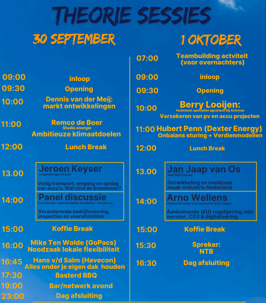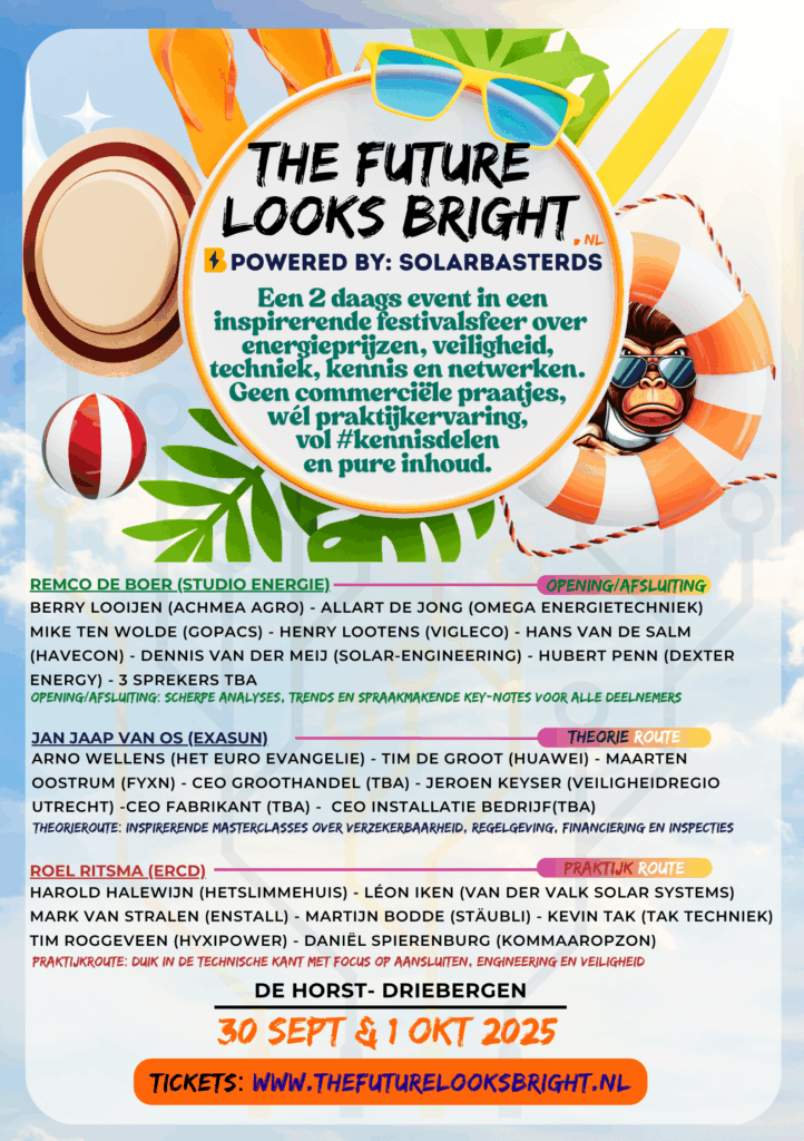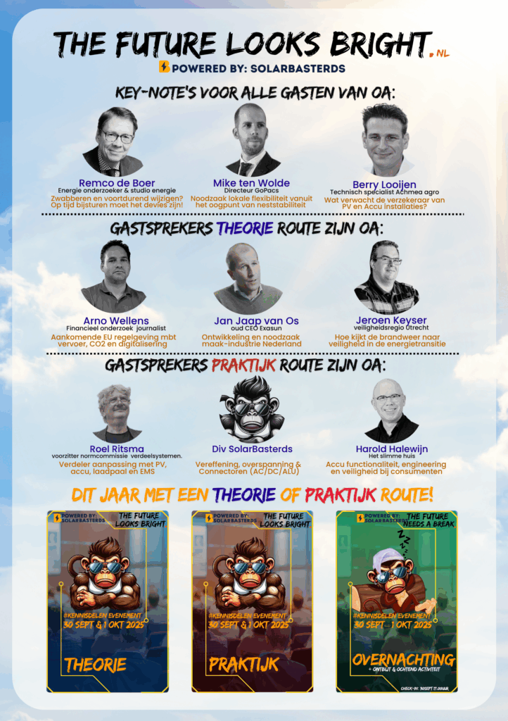 Ben je klaar met het eindeloze gegok, het gerommel in de marge en de meningen van mensen die nog nooit zelf een DC-connector hebben vastgeklikt? Dan is dit jouw event. Geen gebakken lucht, geen hype, geen Amerikaanse oneliners over succes, maar rauwe, eerlijke en direct bruikbare inzichten over wat wél werkt – technisch, strategisch én organisatorisch. Of je nu wilt versnellen, opschalen of eindelijk wilt snappen waarom het telkens spaak loopt: dit is de plek waar bullshit geen toegang krijgt en kennis de standaard is.